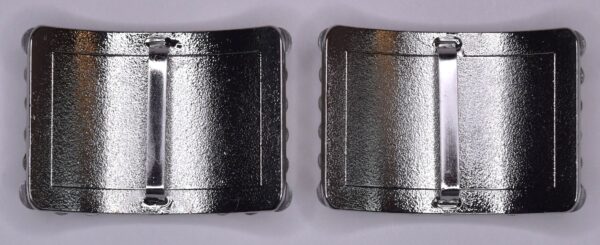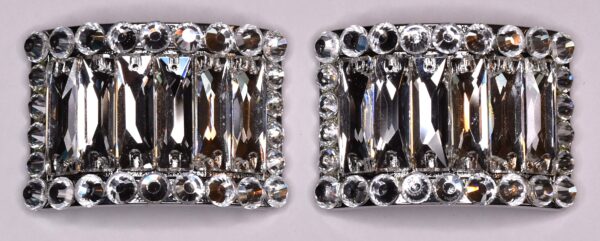 Beautiful dance buckles for heavy / hard shoes. The rhinestones sparkle magnificently and shine in a predominantly silver color. The frame is sturdy metal, and gems are glued to the frame. The buckle easily attaches to the shoe by threading the laces through the bracket on the back of the buckle.