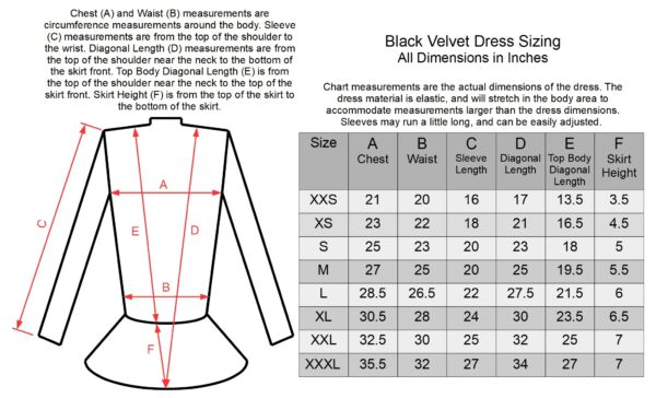 • Dress material stretches to fit different body sizes and types for a given size.